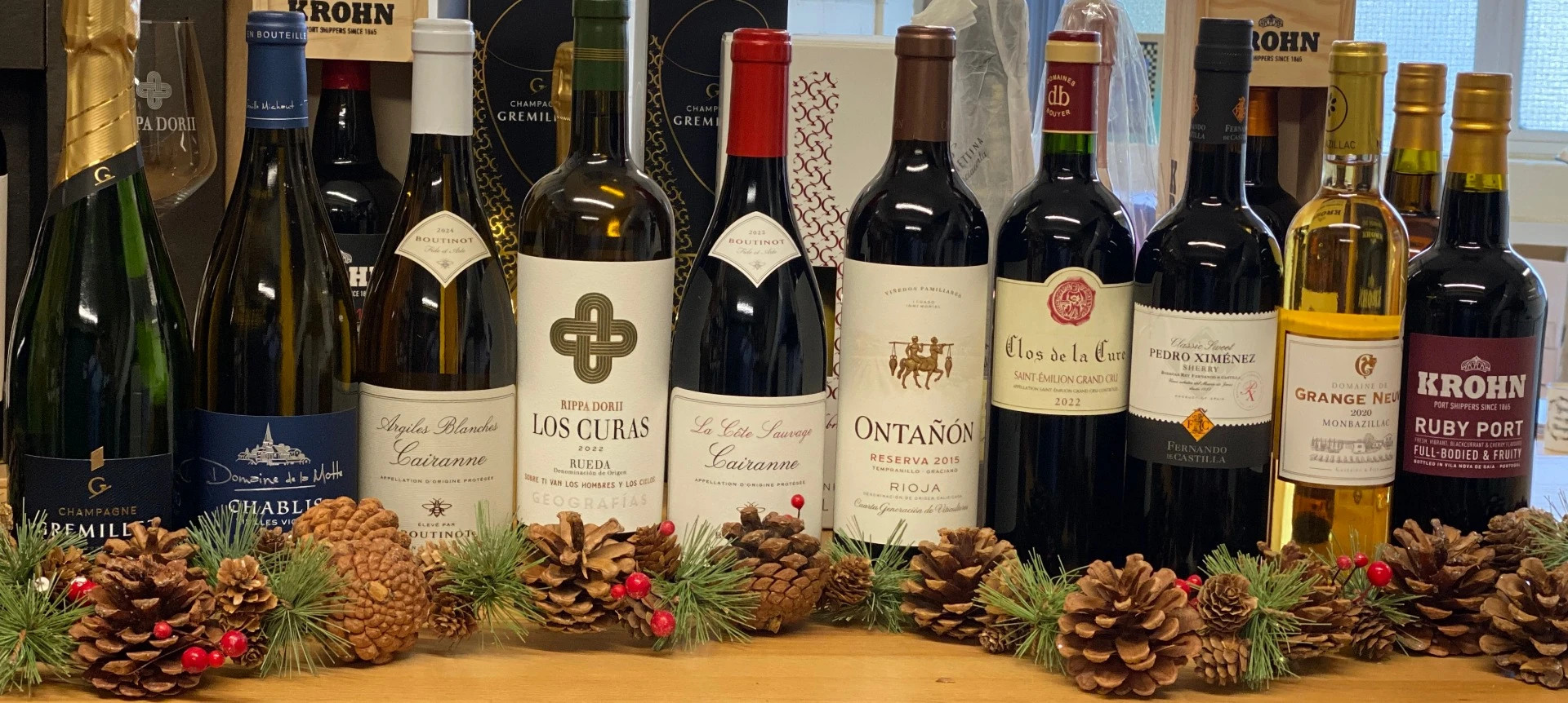 A fine selection of wines to see you comfortably through your Christmas Day celebrations. Starting with fizz, a selection of red & white wines depending on your main meal, finishing with Sherry, Port and dessert wine to compliment all your holiday puddings & treats.